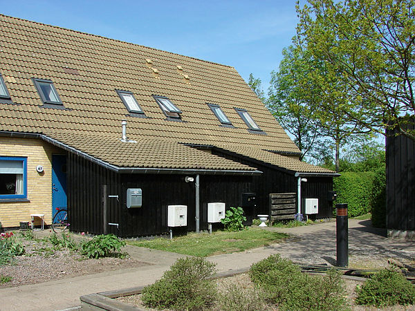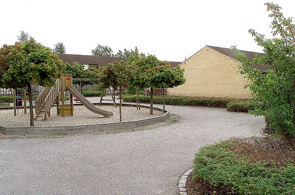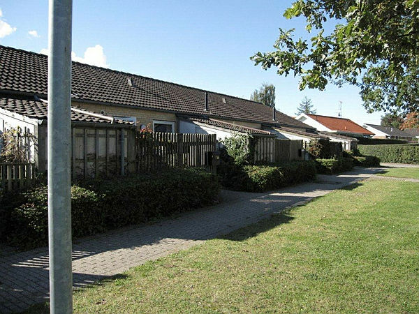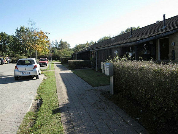 Der er fællesvaskeri, fælleshus og parkeringspladser i afdelingen.