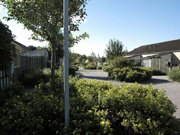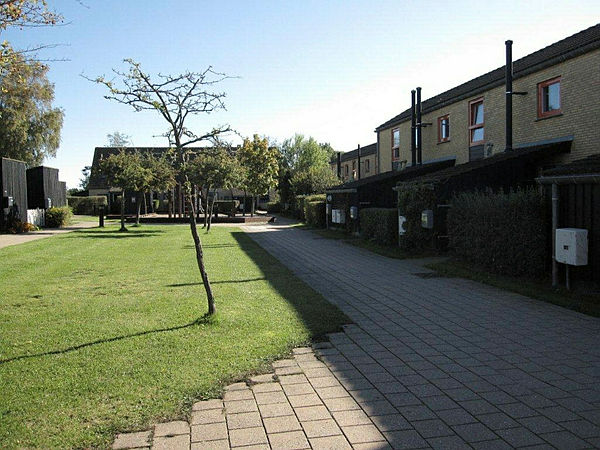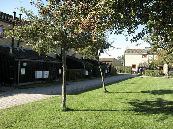 Der er fællesvaskeri, fælleshus og parkeringspladser i afdelingen.